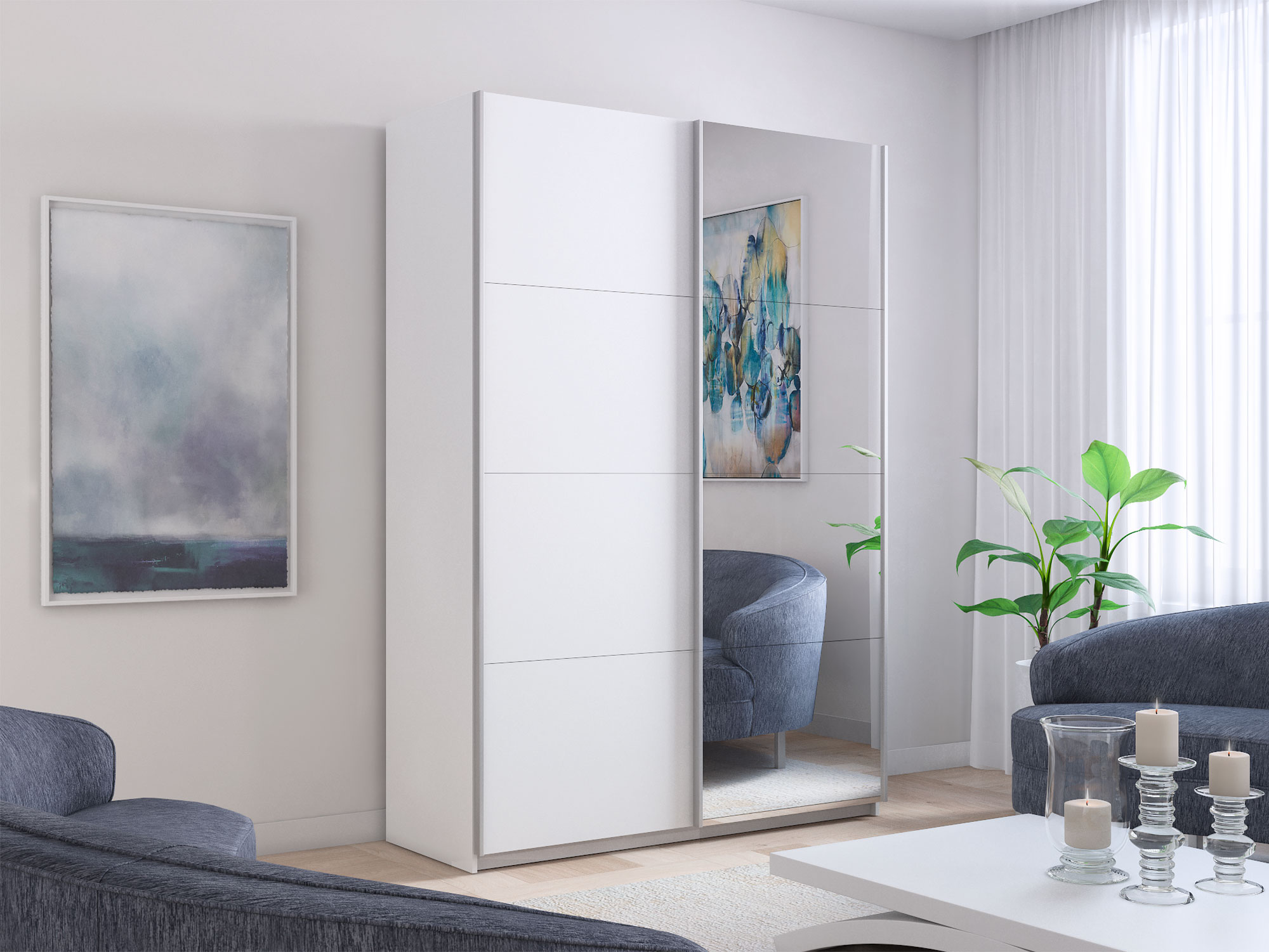 - Шкаф-купе Прайм 2-х дверный 1200 Зеркало/ДСП Белый Снег