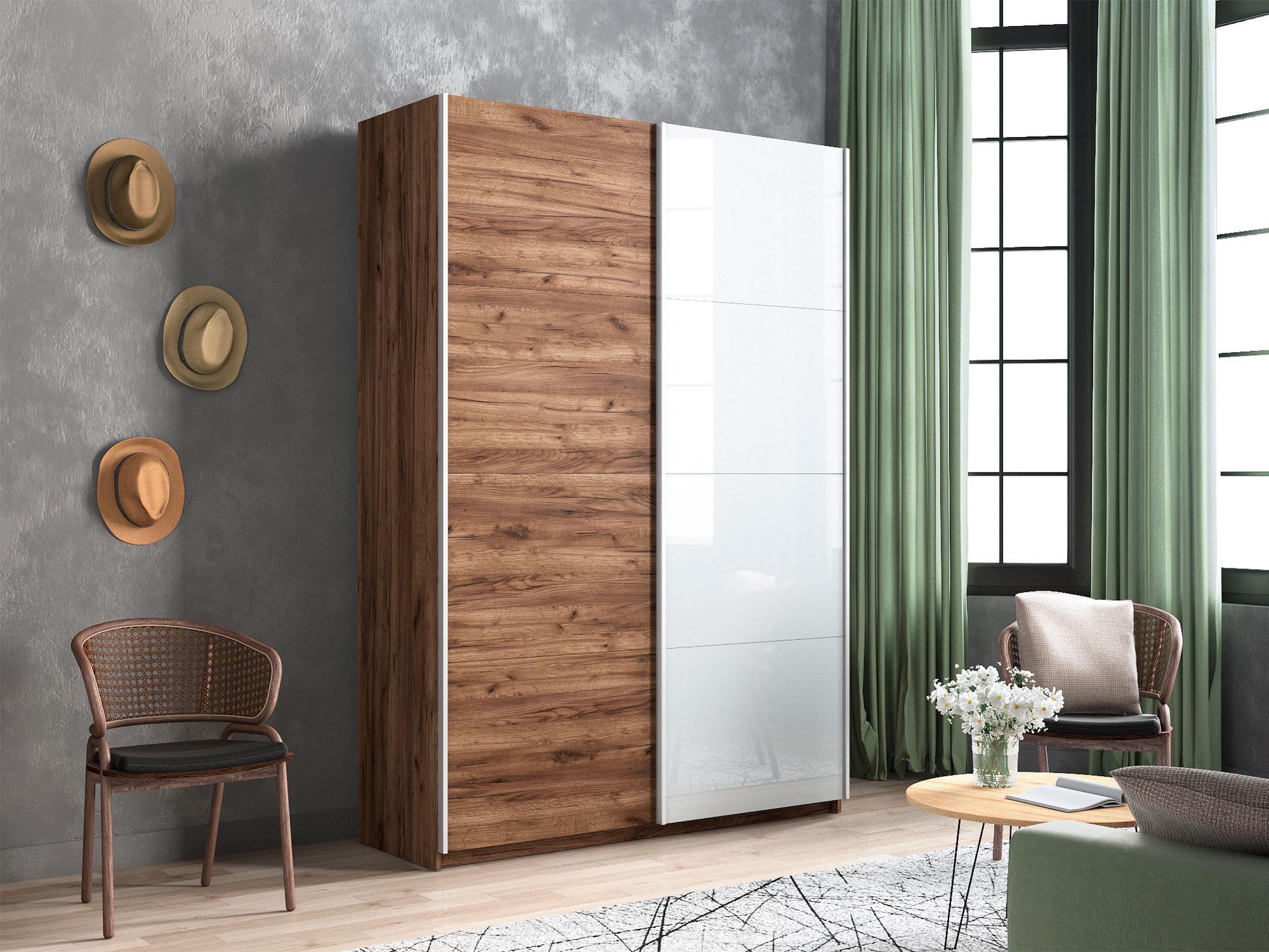 - Шкаф-купе Прайм 2-х дверный 1400 ДСП/Стекло Белое Крафт табачный