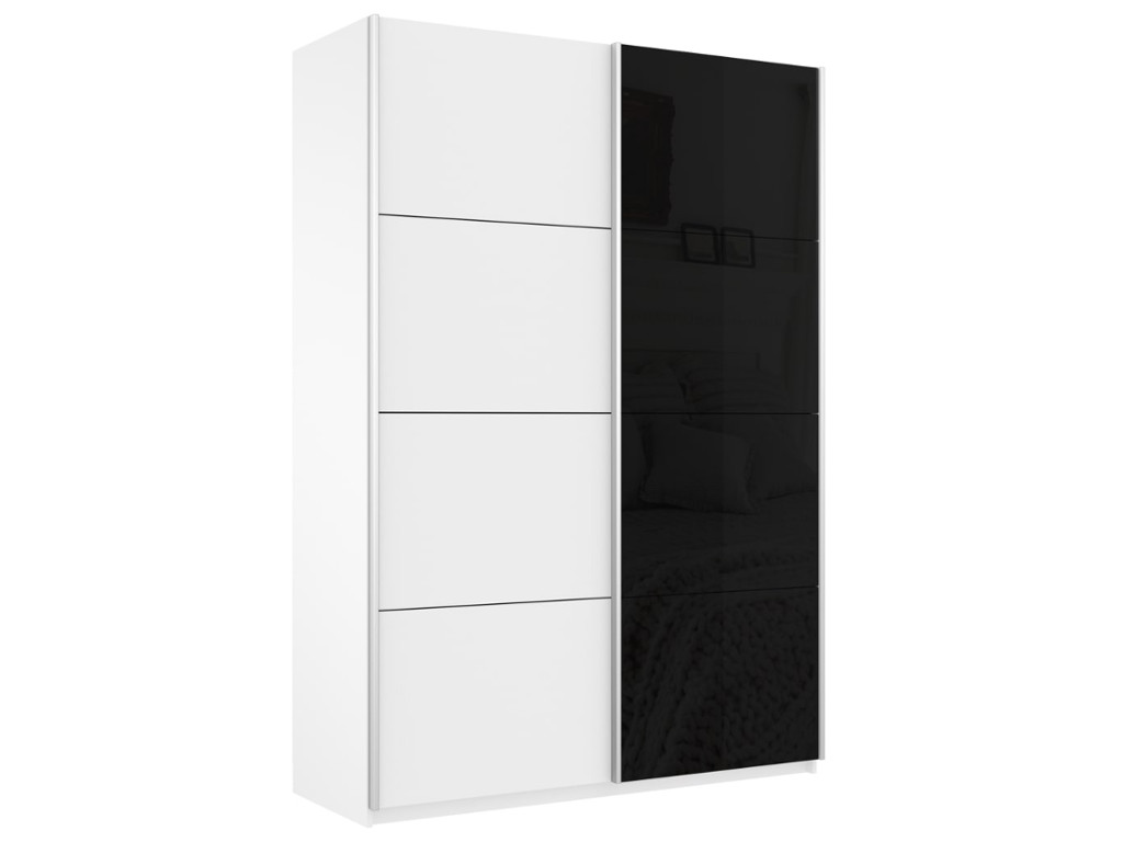 - Шкаф-купе Прайм 2-х дверный 1400 ДСП/Стекло Черное Белый Снег