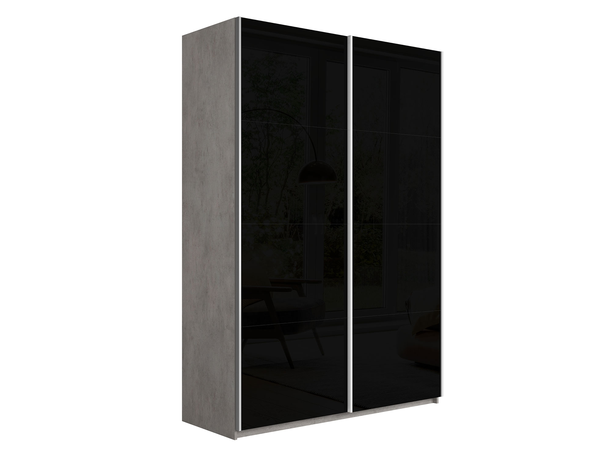 - Шкаф-купе Прайм 2-х дверный 1400 Стекло Черное Бетон