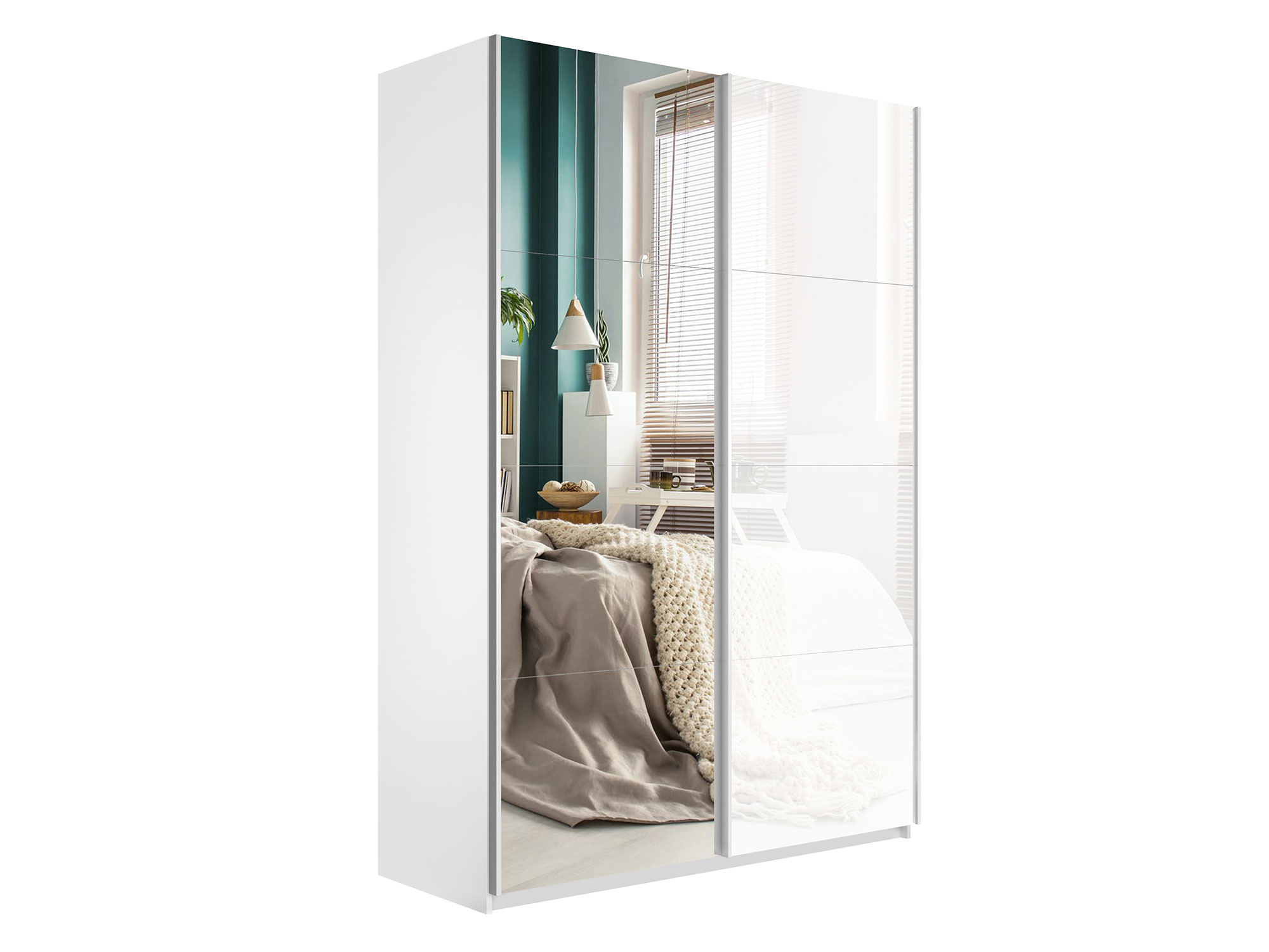 - Шкаф-купе Прайм 2-х дверный 1600 Зеркало/Стекло Белое Белый Снег