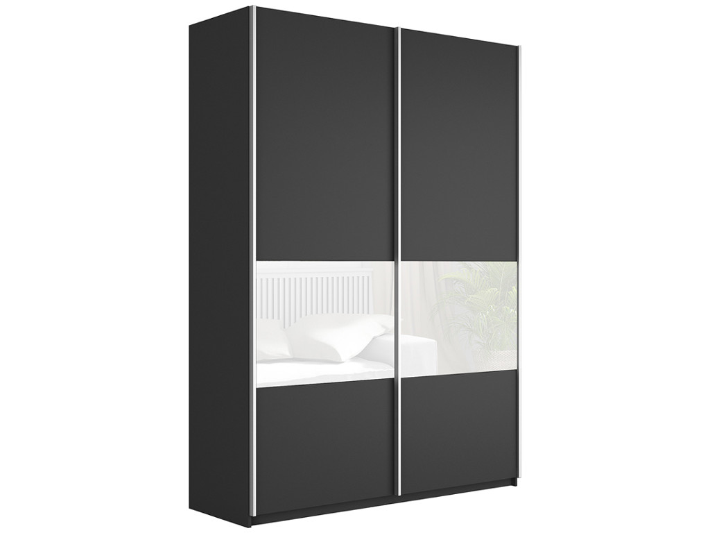 - Шкаф-купе Прайм 2-х дверный ДСП/вставки Стекло Белое Серый Диамант