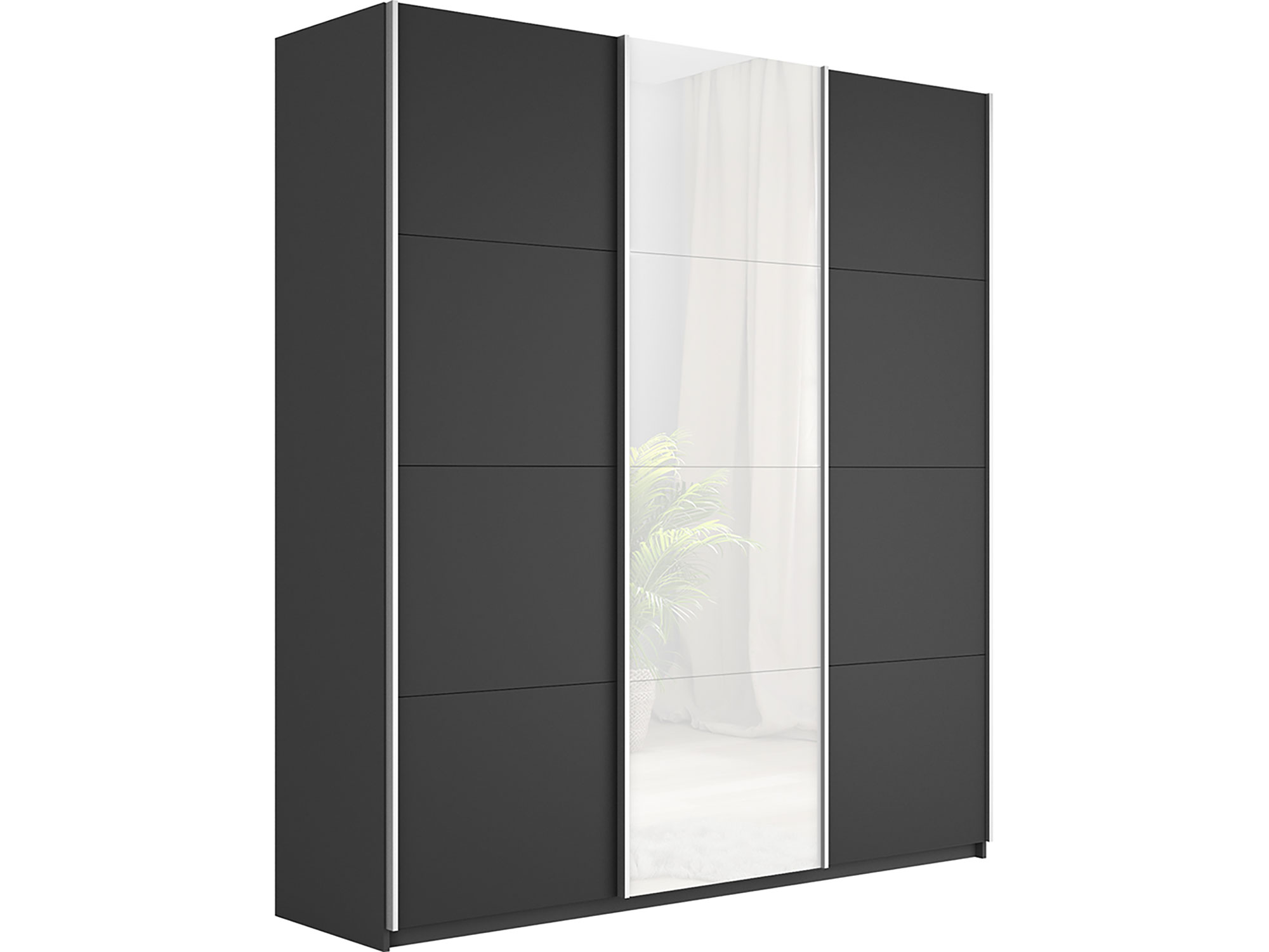 - Шкаф-купе Прайм 3-х дверный 2100 ДСП/Стекло Белое/ДСП Серый Диамант