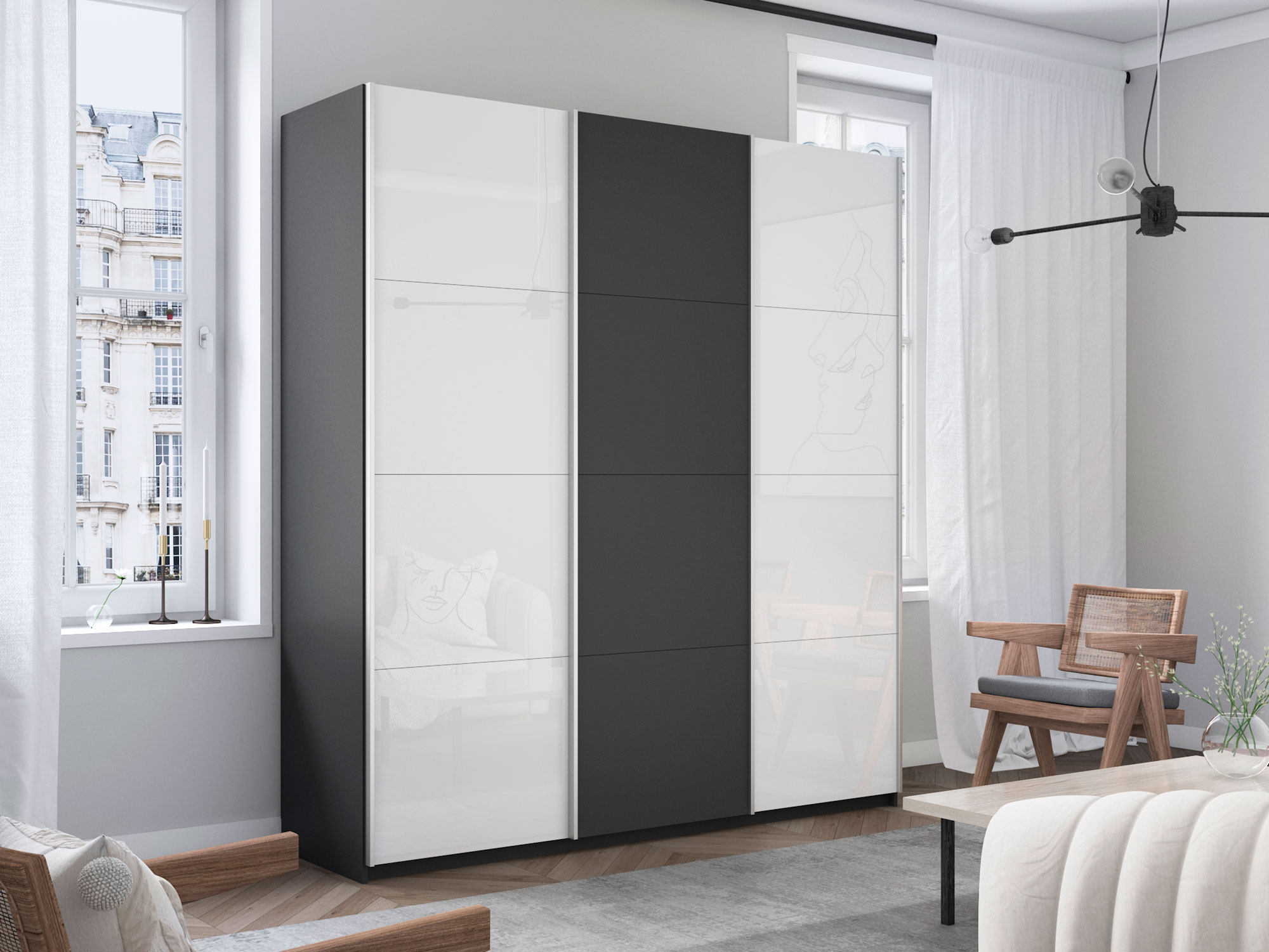 Шкаф-купе Прайм 3-х дверный 2100 два Стекла Белые/ДСП Серый Диамант