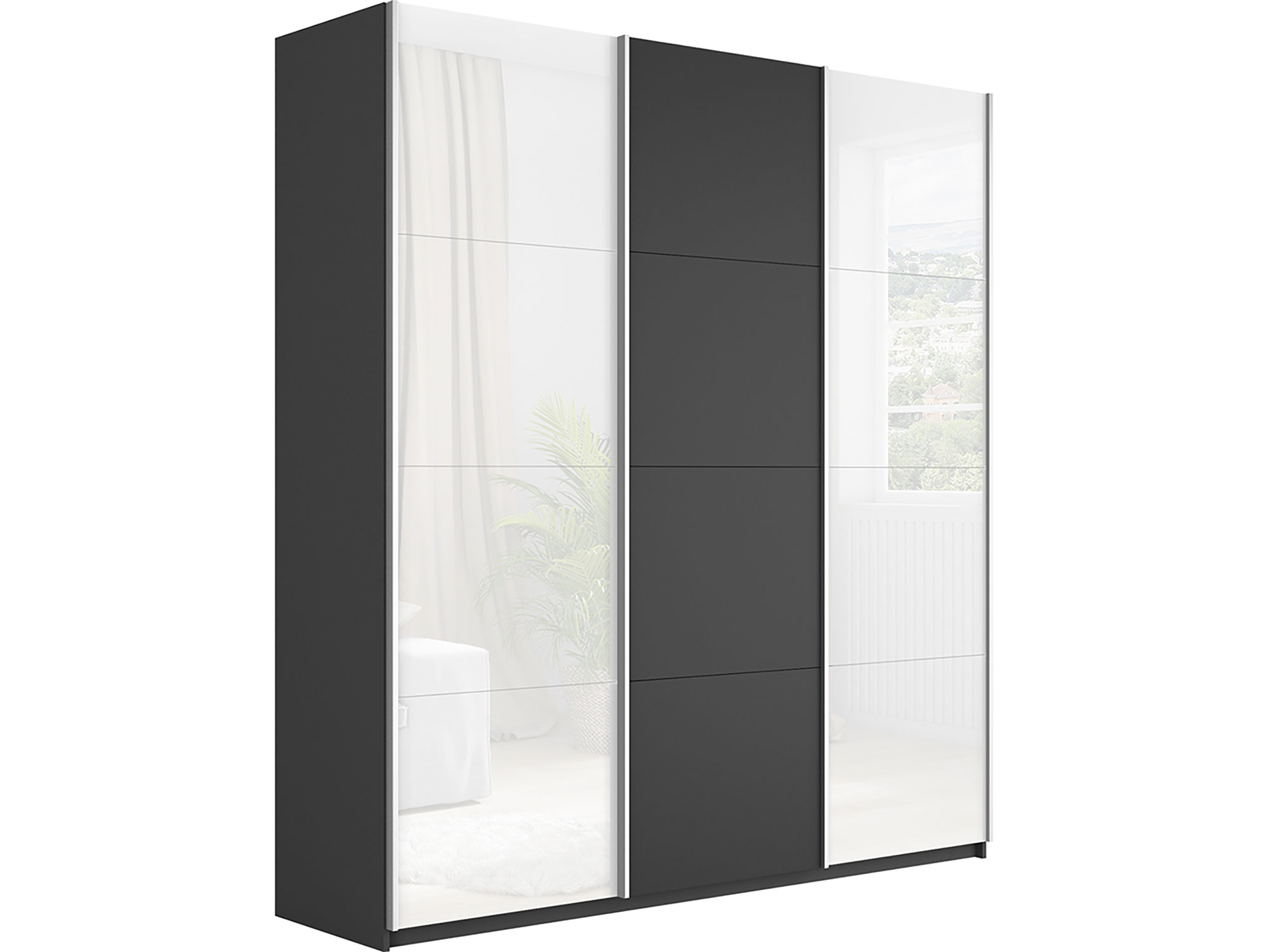 - Шкаф-купе Прайм 3-х дверный 2100 два Стекла Белые/ДСП Серый Диамант
