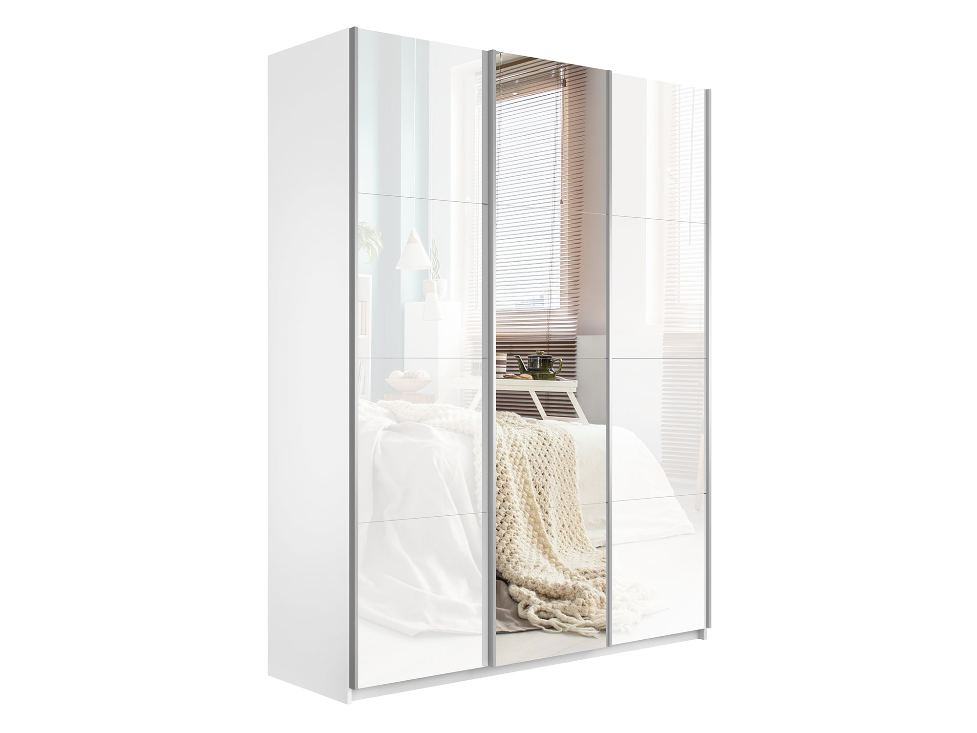 - Шкаф-купе Прайм 3-х дверный 2100 два Стекла Белые/Зеркало Белый Снег