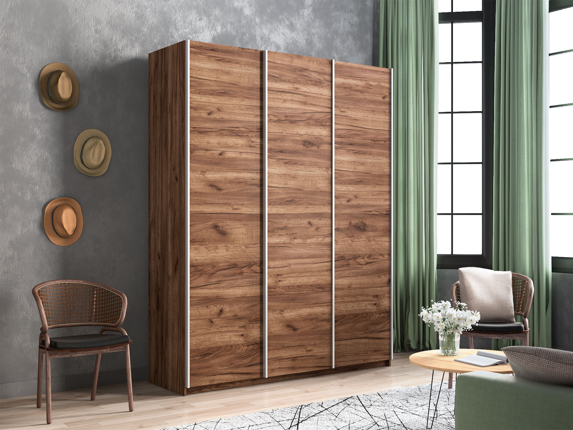 - Шкаф-купе Прайм 3-х дверный 2100 три ДСП Крафт табачный