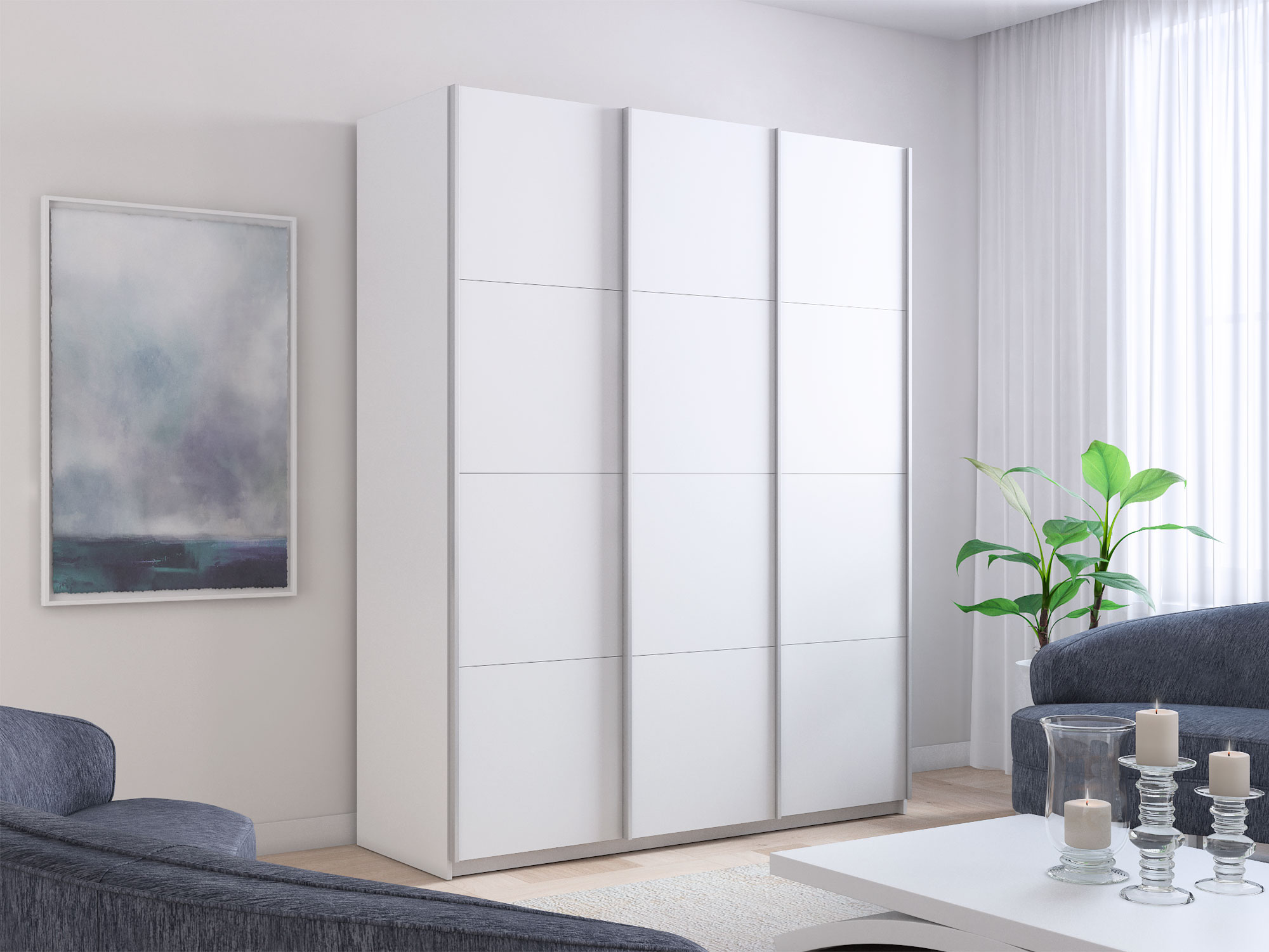 Шкаф-купе Прайм Широкий 3-х дверный три ДСП Белый Снег