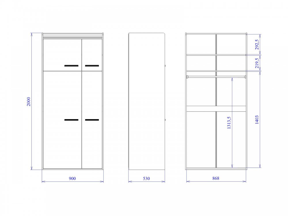 Размер Ш*Г*В: 900*530*2000 мм