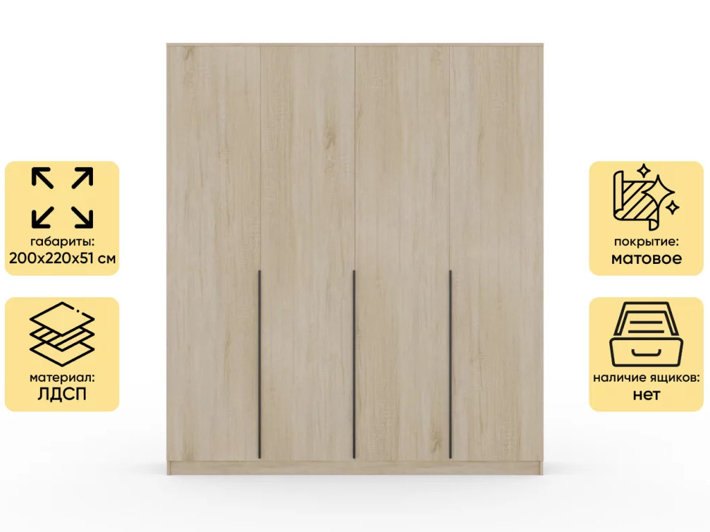 Шкаф Монблан New распашной 2000 4-х дверный Дуб сонома