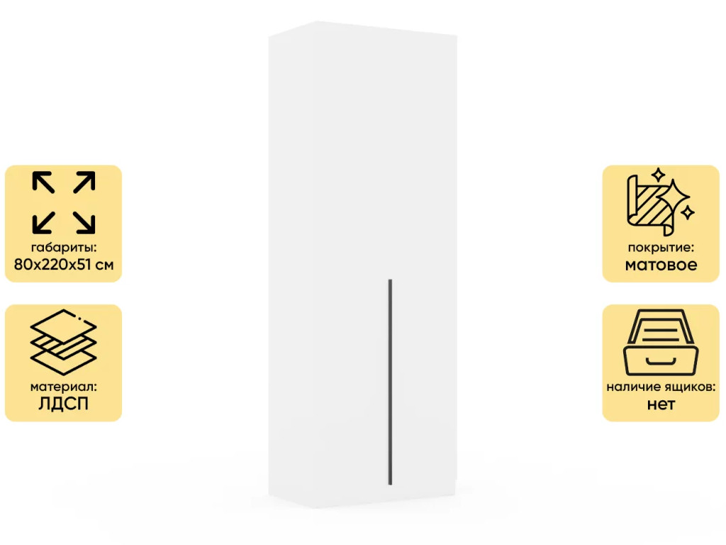 - Шкаф Монблан New распашной 800 2-х дверный Белый