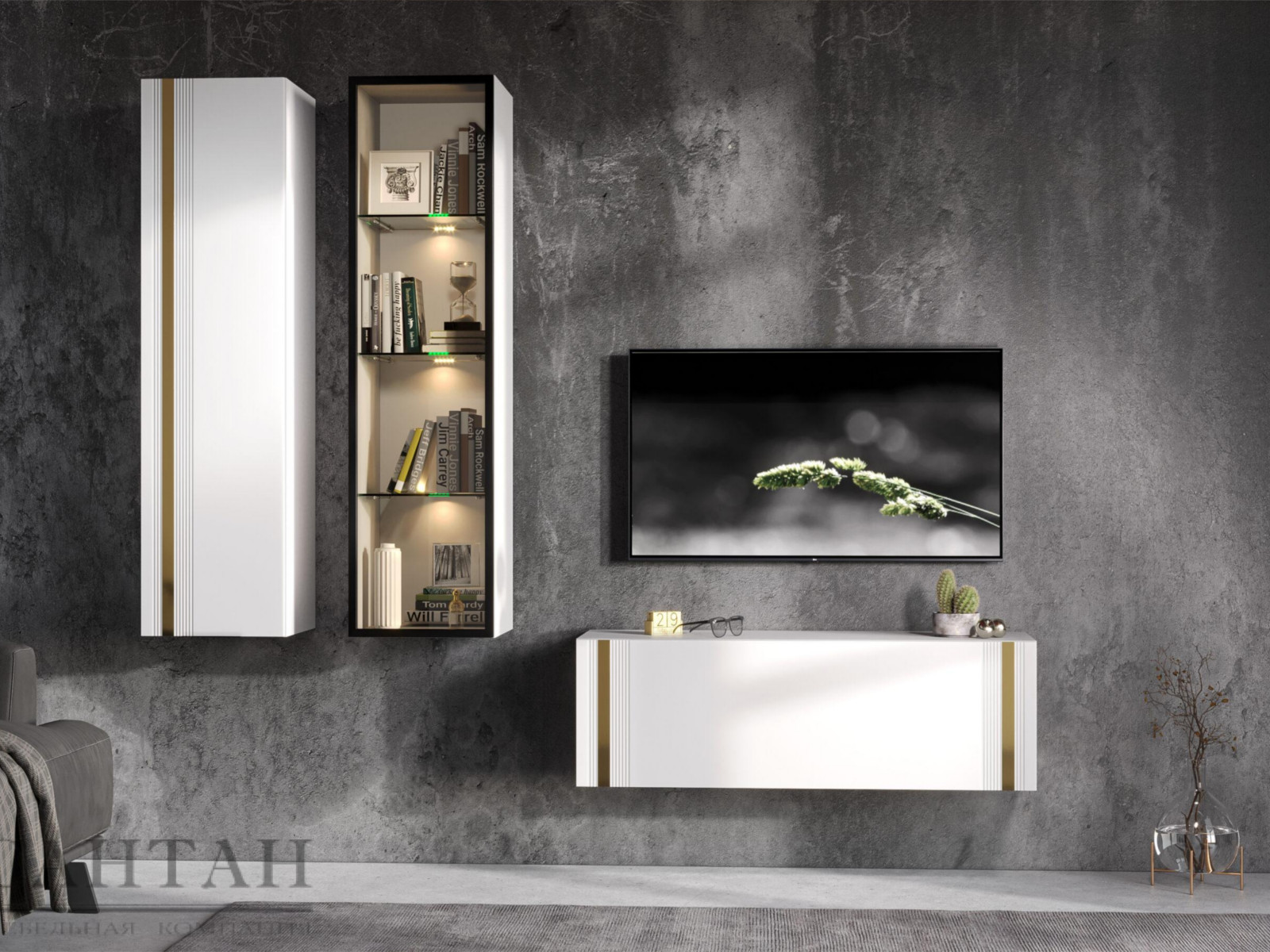 - Фасады МДФ украшены декоративной металлической лентой в цвете "Золото браш".