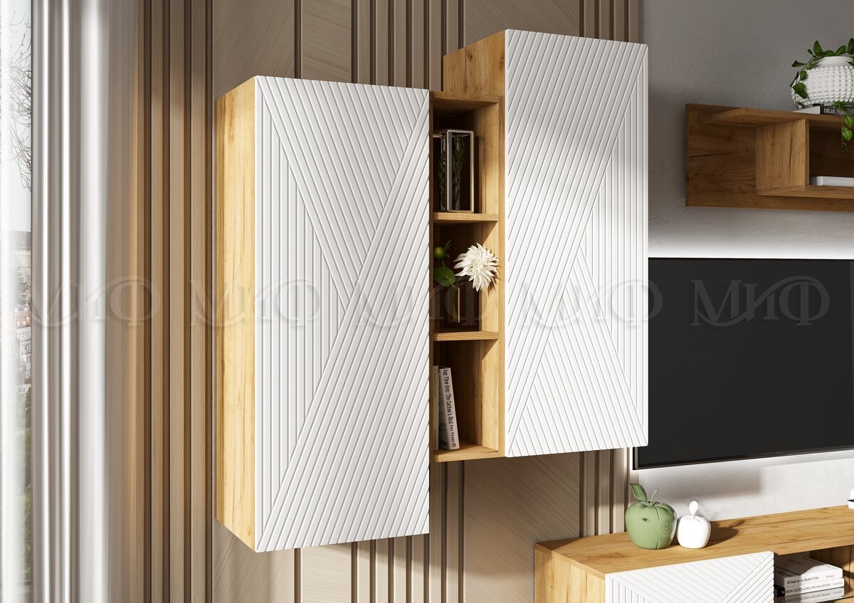 - Шкаф подвесной комбинированный Флэш Браш Вайт, Дуб Крафт