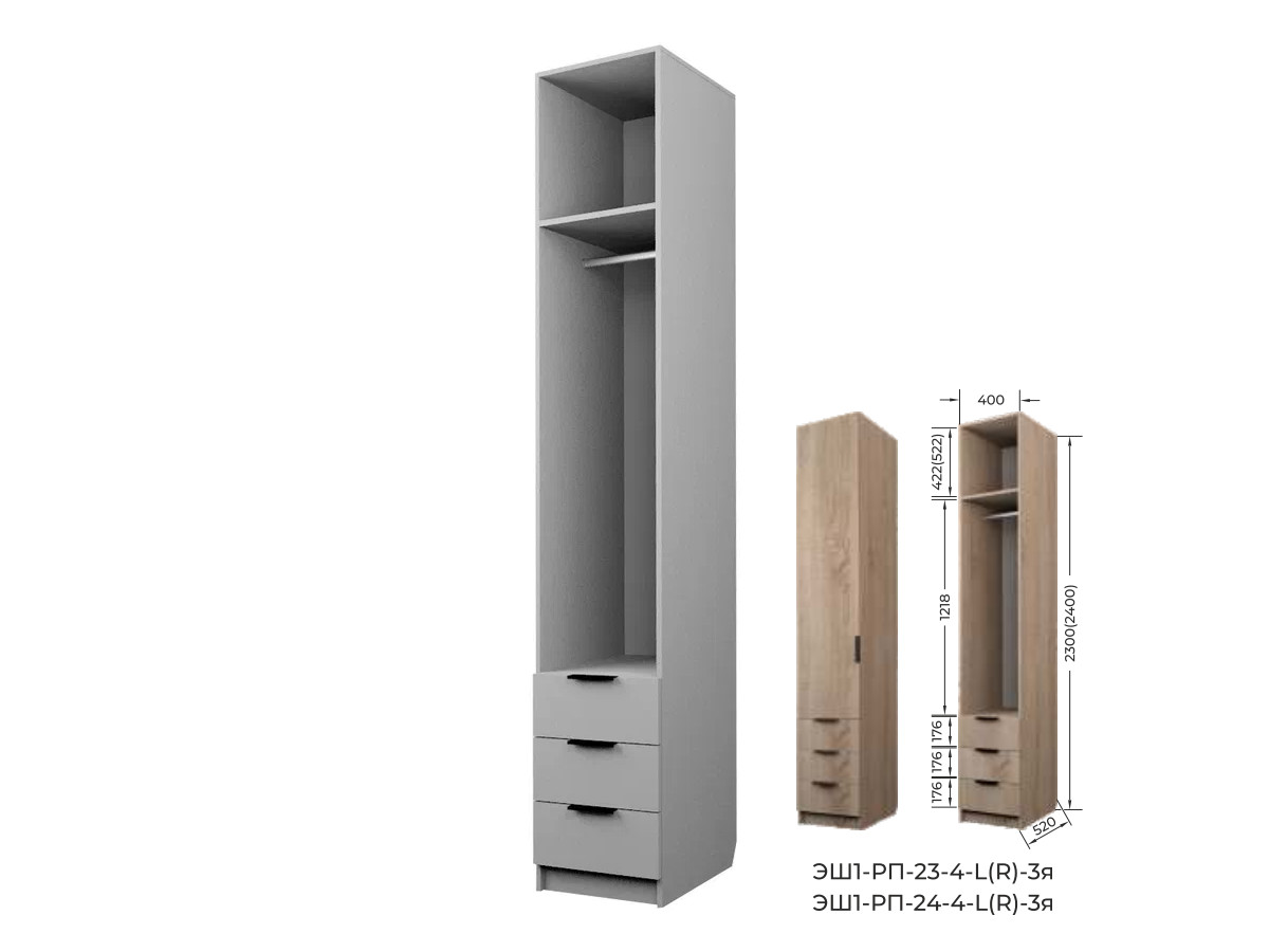 Комплект: ЭШ1-РП-23-4-R-3я,Шкаф с 3 ящиками + ЗС-23-3я,Зеркало для шкафов ЭШ 2300 мм