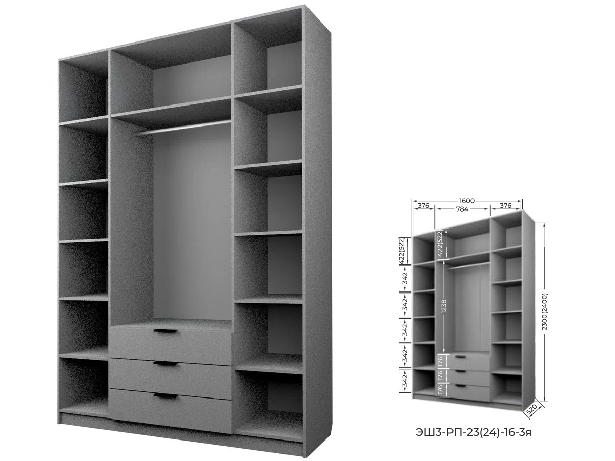 Комплект: ЭШ3-РП-24-16-3я, Шкаф с 3 ящиками + два ЗС-24-3я,Зеркало для шкафов ЭШ 2400 мм + два ЗС-24,Зеркало для шкафов ЭШ 2400 мм