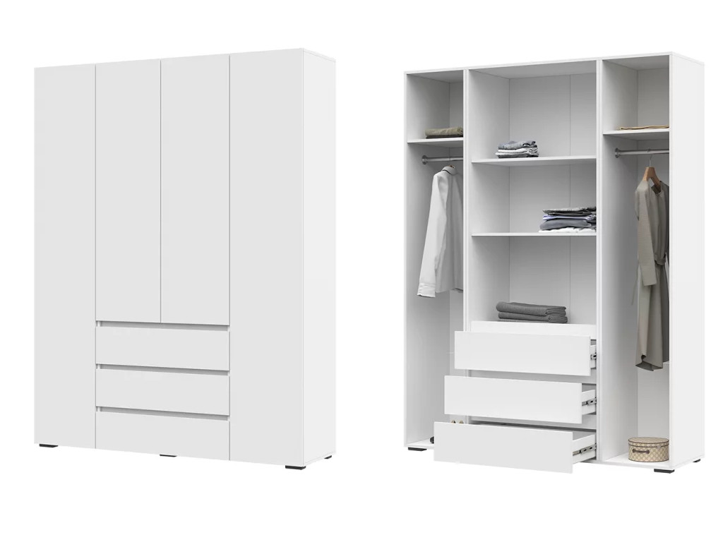 - Шкаф с ящиками Хелен 4-х створчатый ШК 05 Белый шагрень