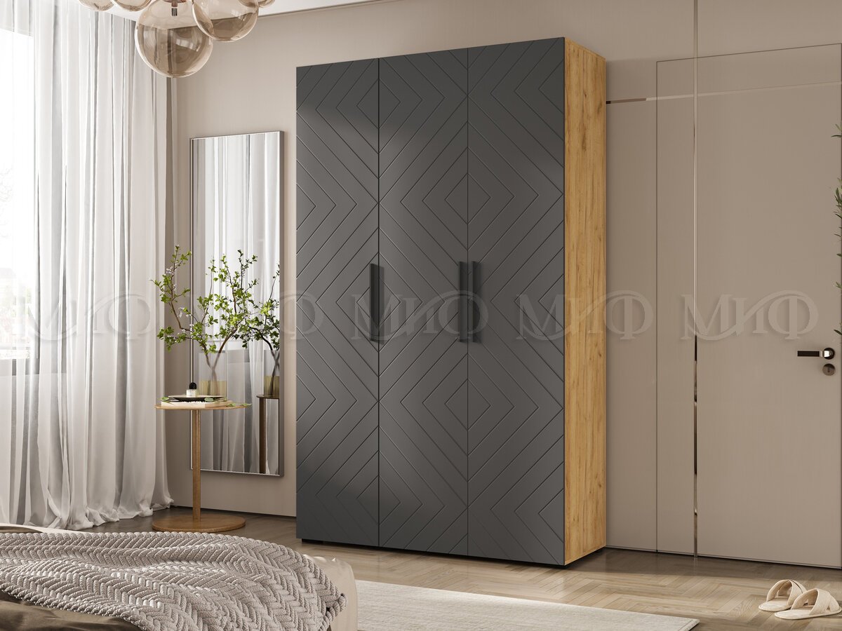 Шкаф трехстворчатый (1350) Флэш Браш Графит, Дуб Крафт
