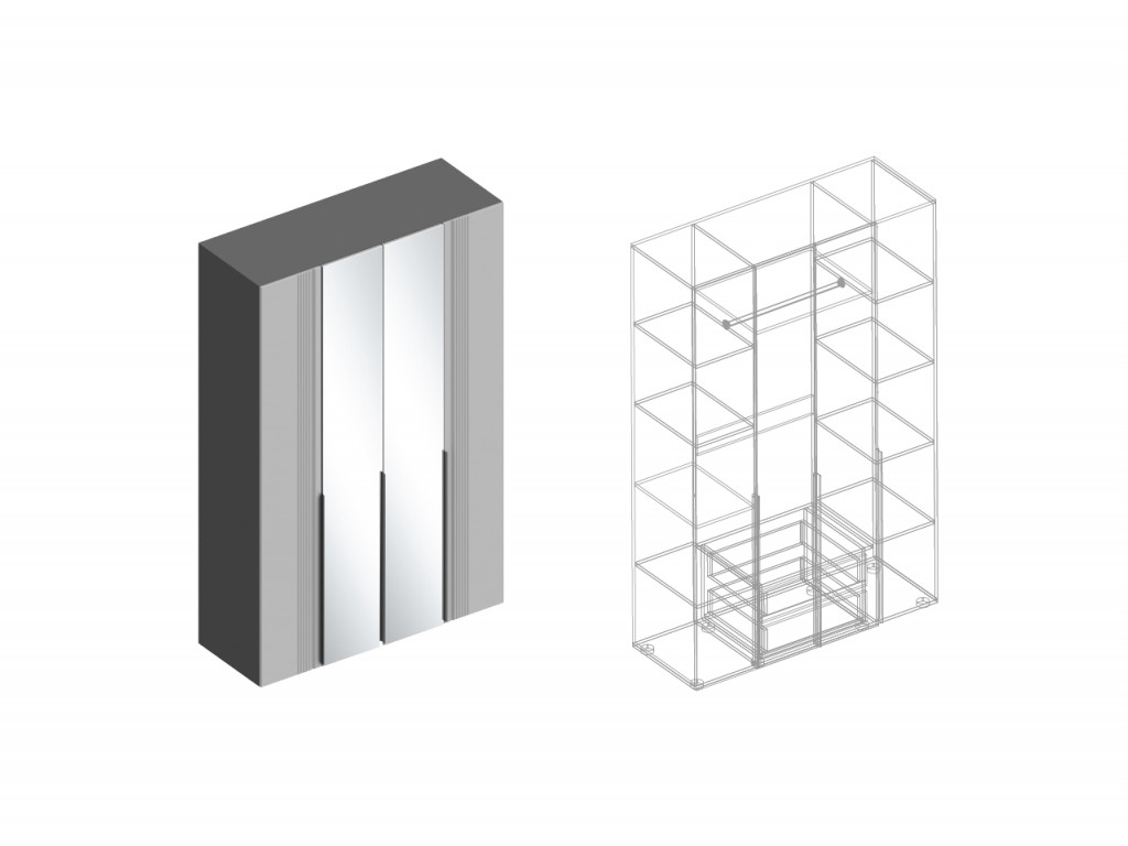 - Шкаф Вита 4-створки с зеркалом тёмно серый лофт