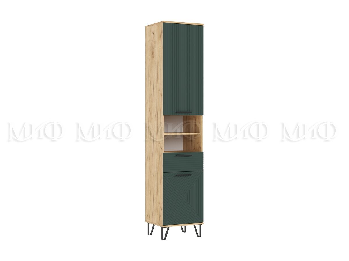 - Пенал открытый в прихожую Флэш Браш Мени Грин, Дуб Крафт