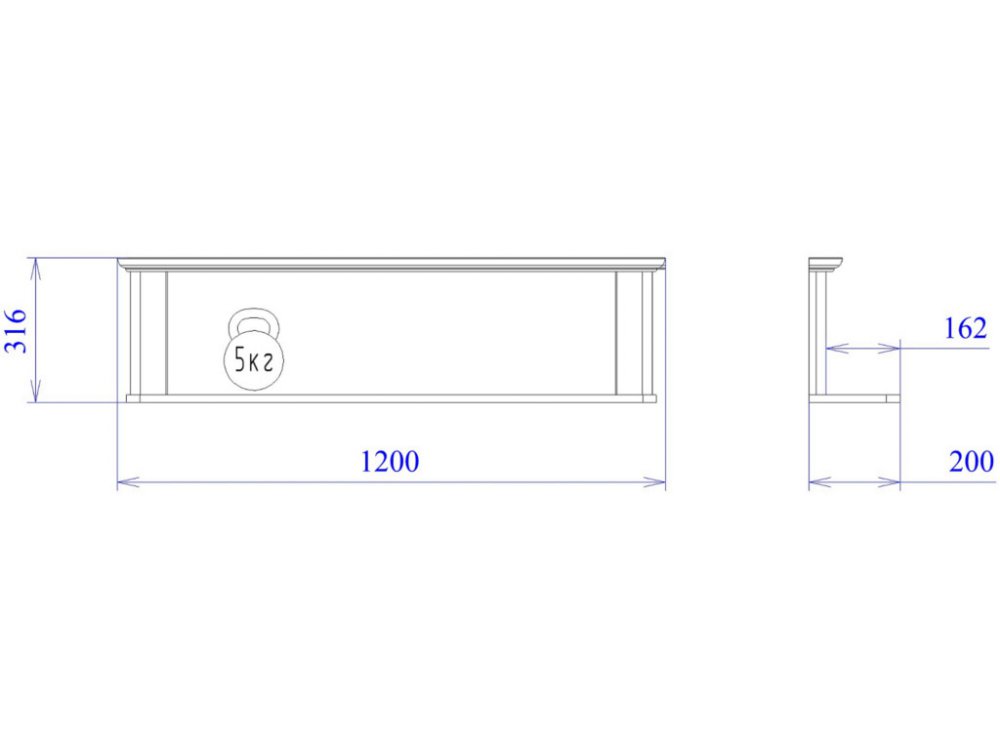 Размер ШхГхВ: 1200*200*316 мм