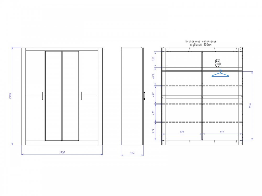 Размер ШхГхВ: 1920*538*2300 мм