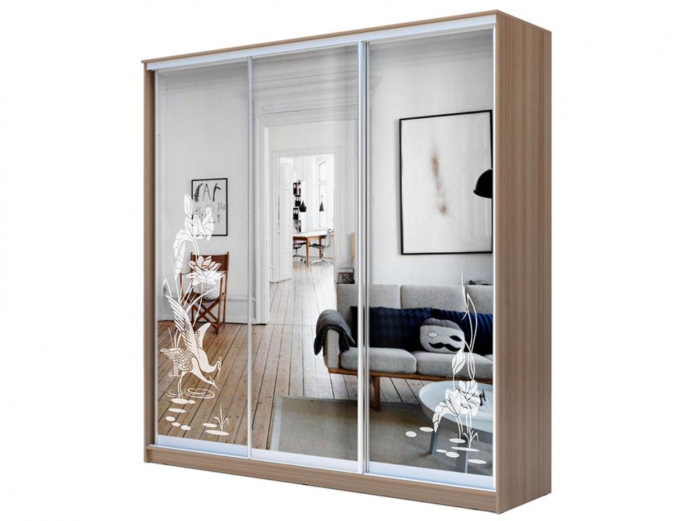 - 1 дверь Зеркало + 2 двери Зеркало с пескоструйной обработкой
